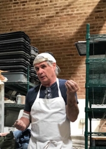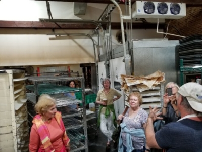Sunday morning, after a leisurely breakfast, we visit Berkshire Mountain Bakery and are introduced to the celebrated baker, Richard Bourdon. Bourdon’s style of baking reaches back to Europe where the ancient art of natural sourdough baking began. He makes some of the best loaves using traditional European-style baking techniques. His bread is hand-shaped and is naturally leavened with sourdough fermentation. Born in Quebec Richard owned his own bakery in the Netherlands and worked in France to learn his bread-making trade. While he guides us with descriptions of his bread making techniques, we munch on some of his hot and chewy oven-baked pizza, He is not only a baker but also a teacher and philosopher in this small-town artisanal bakery. He tells us how our ancestors fermented grains to make cakes and breads using just flour and water as a starter. These were left to ferment with natural microbes in the air. Bacteria and wild yeast feed on nutrients in the flour in order to multiply thus producing carbonic gas that allows the bread to rise. The result is a lighter texture. Mixing dough, shaping loaves is his passion using fresh-milled whole grain flour or flour of sprouted grain or spelt. All are milled on site in this former paper mill using a slow stone grind. Various baguettes, chocolate loaves, cheese and herb breads as well as cherry pecan, ciabatta and olive breads are a few of his extensive selections…..I go away with a healthy supply of a number of these loaves.