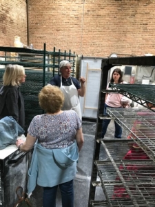 The next morning after breakfast we head to the Great Barrington Farmers Market. Here fresh and beautiful produce is displayed, all being photographed by Lisa’s friend, Gary Goldsmith. The vibrant local foods remind me of colorful medieval paintings, I vicariously devour the fresh berries, creamy cheeses, farm fresh eggs and local vegetables which are definitely worthy of an artist’s palette. The fresh herbs are an embrace of greens while the various types of mushrooms inspire some of our group to take home blocks of hardwood chips, and sawdust which have been inoculated with mycelium spores. Their plan is of course to develop the growth of mushrooms in their homes. Prepared foods are also available at the market. There are pork tamales, tacos, mixed berry strudels-all kinds of desserts. I satisfy my cravings by buying a lovely lemon cake.
